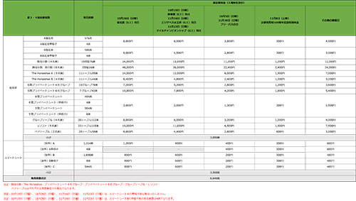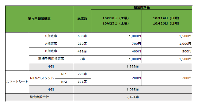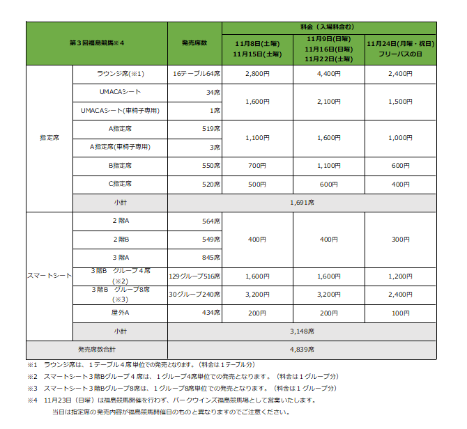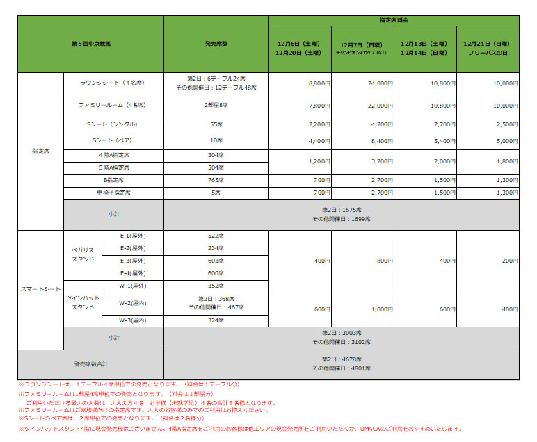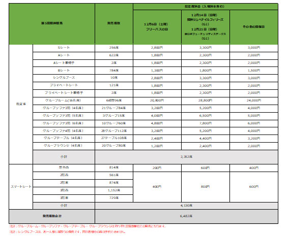 競馬場指定席・スマートシート 料金表・マップ(11月20日(木曜)更新)