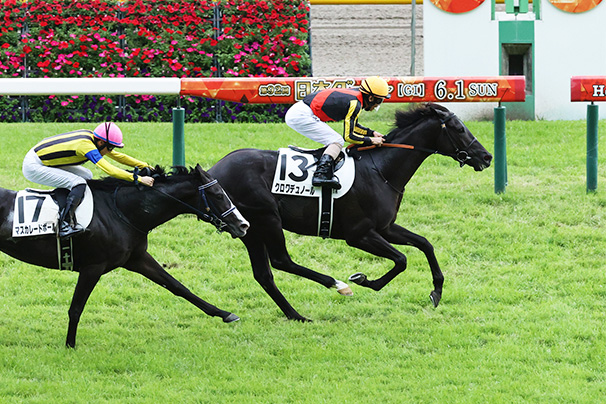 直線では坂の手前から早くも追い比べが始まる。ここでパワフルな末脚を繰り出し、残り300メートルの地点で抜け出したのがクロワデュノールだ。皐月賞のように目標とされるリスクのある早め先頭策だったが、北村騎手いわく「負けるイメージが全然なかった。馬を信じて追った」。自信満々のスパートでサトノシャイニングやショウヘイを振り切ったクロワデュノールは、外から伸びたマスカレードボールを4分の3馬身押さえて先頭ゴールを果たすのだった。