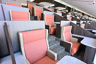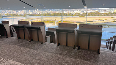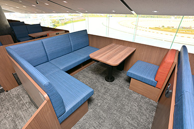 東ウイング5階にあり、ゆったりとした座席が特徴のお席です。ゴールからは遠くなっていますが、落ち着いた雰囲気のなかで、ゆっくりレースをご覧いただけます。