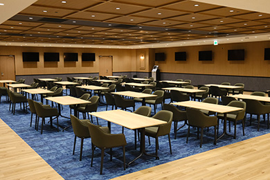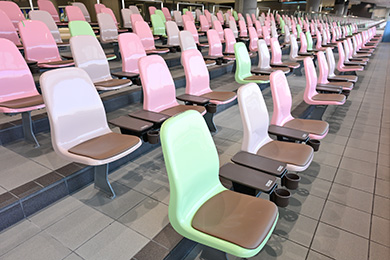 東西ウイング2階・3階にあり、背もたれのついた屋内席です。各席にドリンクホルダー・サイドテーブルを設置しております。