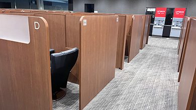 東ウイング4階にあり、プライバシー性を最大限に重視した完全個室型のお席です。各ブースに専用モニターを設置するとともに、室内の座面全体にソフトマットを敷いており、快適に競馬をお楽しみいただけます。
