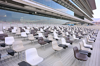 西ウイング1階にあり、コースに最も近い屋外席です。競走馬の足音が聞こえる大迫力のレースをお楽しみください。
