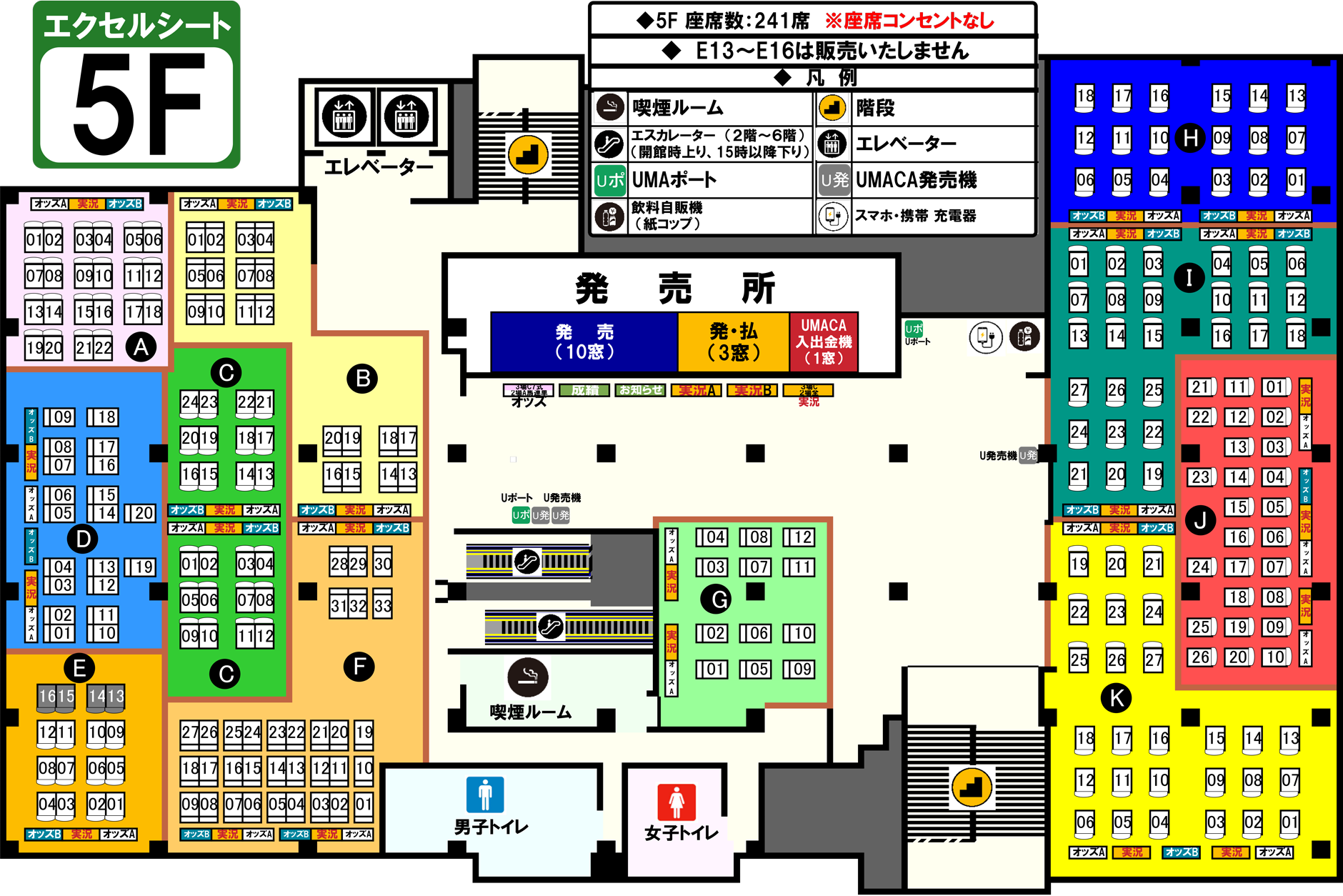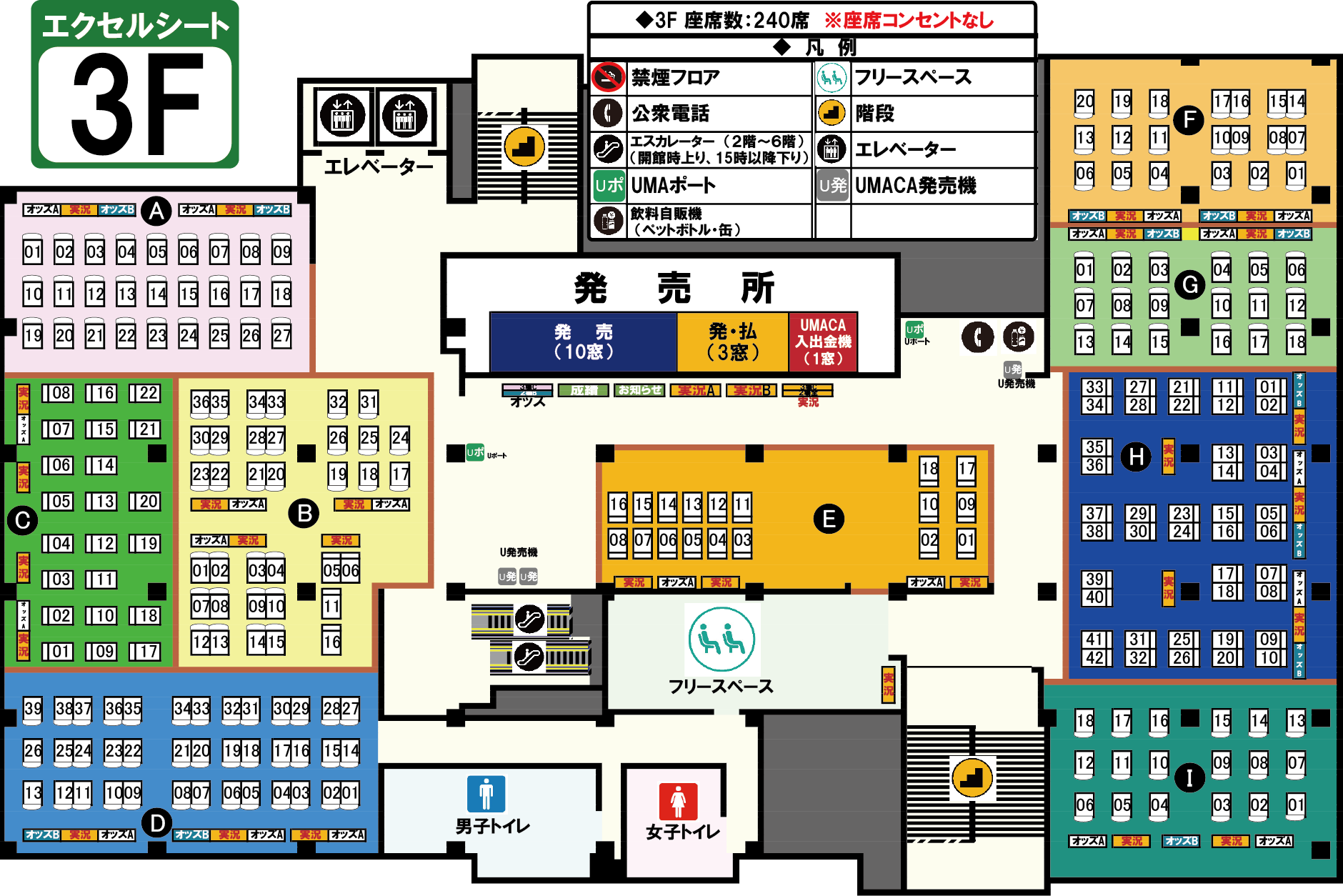 ・ 車椅子対応のお席ご利用の方もエクセル利用券発売所に直接お越しください。