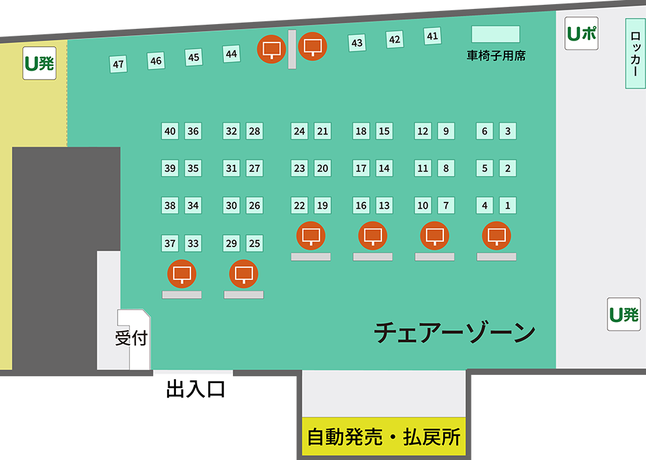 チェアーゾーン48席/デスクゾーン34席