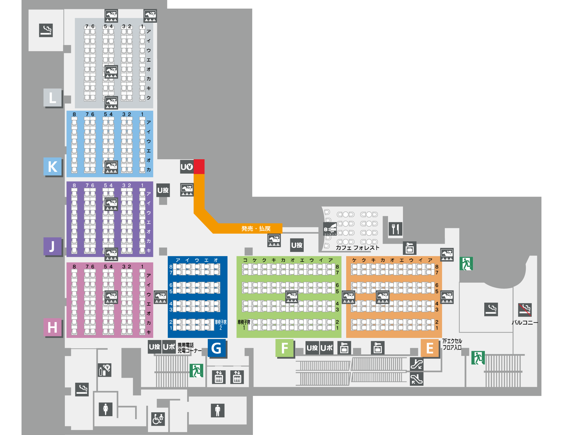 UMACA発売機:3台(指定席エリア外にUMACA入出金機2台) |