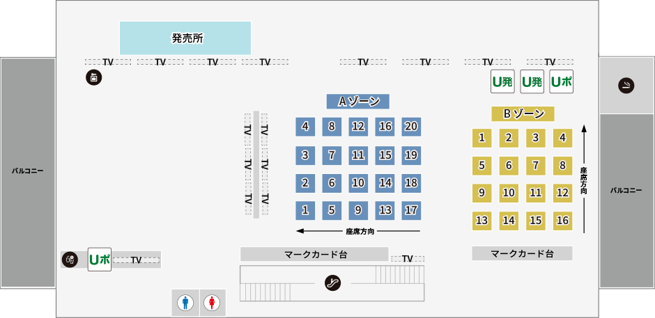 ・ B館5階、6階では、UMACA発売のみご利用いただけます(現金で馬券を購入する場合やUMACAへの入出金を行う場合は、4階をご利用ください)。
