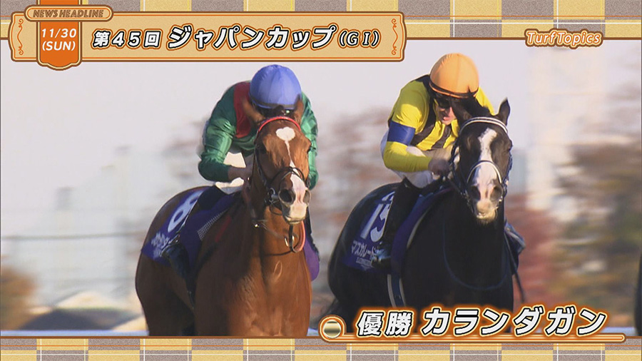 今週のニュースフラッシュでは、ジャパンカップなど先週行われた重賞の結果を振り返るほか、C.ルメール騎手JRA通算2,100勝達成のシーン、横山典弘騎手の黄綬褒章受章記念セレモニーの模様、顕彰者・顕彰馬セレモニー、有馬記念ファン投票第2回中間発表などについてお送りします。