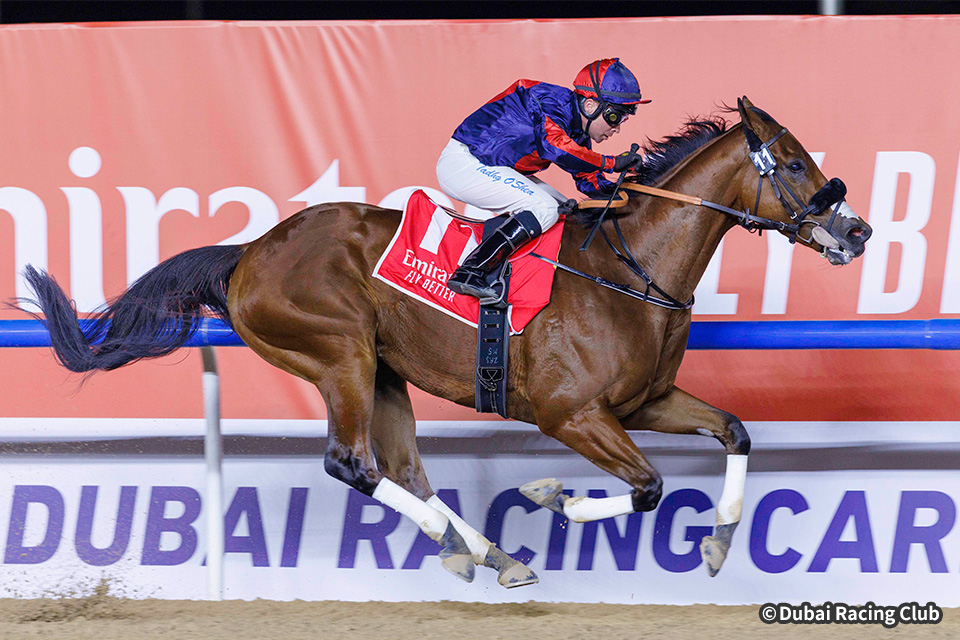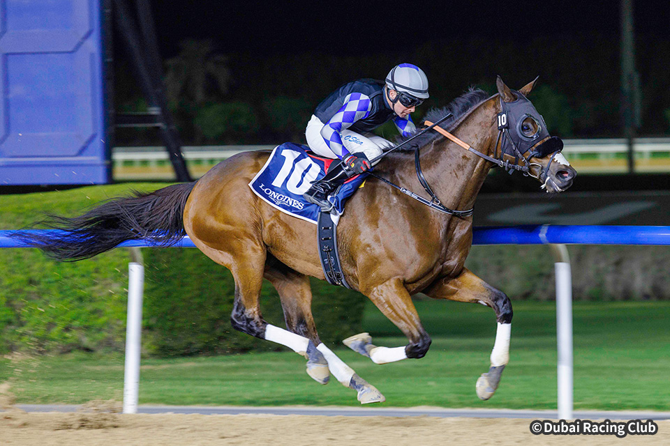 ゴドルフィンの自家生産馬としてイギリスのC.アップルビー厩舎からデビュー。2歳(2022年)10月のデビュー戦と翌年6月の2戦目(ともにイギリス・芝1,600メートル)を連勝しましたが、その後は昨年2月まで4連敗。同年3月のセールで現在のオーナーに落札され、現在の厩舎に移りました。迎えた今シーズンはダートに転向。昨年11月と12月の条件戦(ともにUAE・ダート1,600メートル)をそれぞれ先行して快勝すると、重賞初挑戦となった今年1月のアルマクトゥームチャレンジ(G1・UAE)は先行策からウォークオブスターズに直線で突き放されて2.89馬身差の2着でしたが、続く前走3月のアルマクトゥームクラシック(G2・UAE・ダート2,000メートル)では5、6番手追走から直線で抜け出して、最後はアルマクトゥームマイル(G2・UAE)3着のアートゥリアスに8.46馬身差をつけて優勝。重賞初制覇を果たしました。