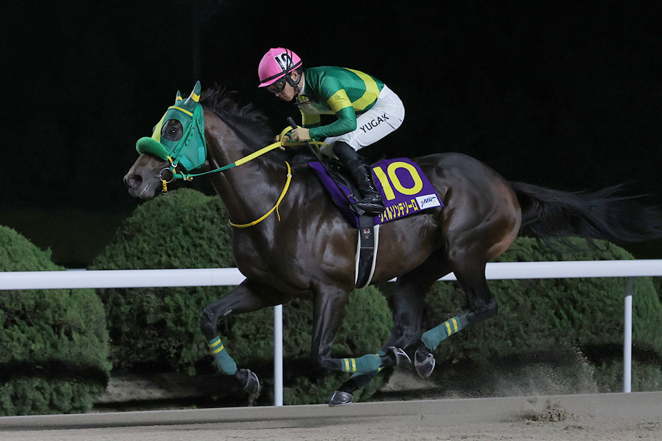 2歳(2023年)7月のデビュー戦(ダート1,400メートル)を後方から豪快に差し切って優勝。その後、ヤマボウシ賞3着、オキザリス賞9着と足踏みしましたが、寒椿賞(1勝クラス・ダート1,400メートル)で差し切り勝ちを収めて2歳シーズンを終えました。昨年は2月のヒヤシンスS(リステッド・ダート1,600メートル)を後方から突き抜けて3馬身差で制すと、4月のユニコーンS(GⅢ・ダート1,900メートル)では後方からマクる形で長くいい脚を繰り出して優勝。さらに続く6月の東京ダービー(JpnⅠ・大井・ダート2,000メートル)も3番手から直線で抜け出して6馬身差で圧勝しました。その後、秋はジャパンダートクラシック(JpnⅠ・大井)で始動して、勝ったフォーエバーヤングから1秒4差の4着でしたが、続く前走12月の東京大賞典(GⅠ・大井)では促していって向正面でフォーエバーヤングの直後にまでポジションを上げると、直線でもよく食い下がり、勝ったフォーエバーヤングからは0秒3差、2着のウィルソンテソーロとはクビ差の3着に入りました。今年は2月の前走サウジカップ(G1・サウジアラビア)で始動。3から4コーナーで少し置かれ気味になりましたが、直線で盛り返してフォーエバーヤングの6着に入りました。