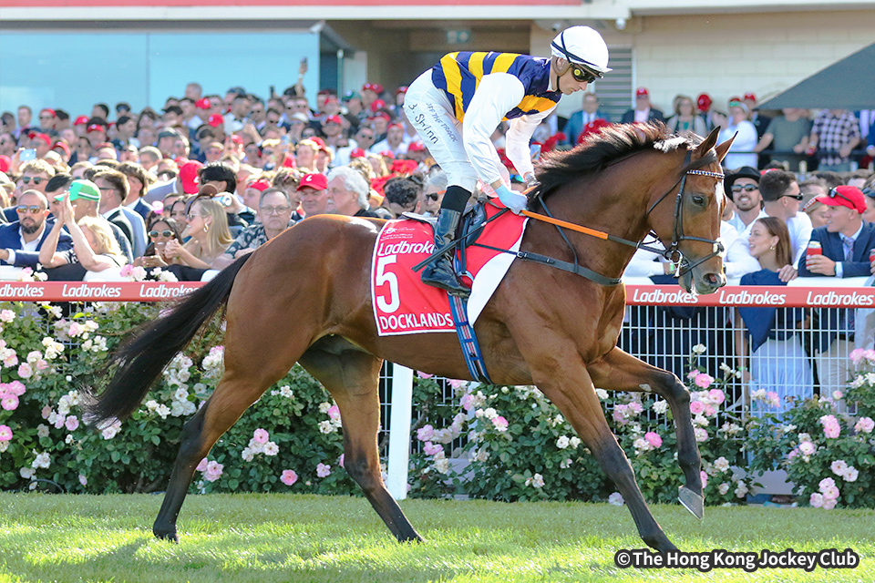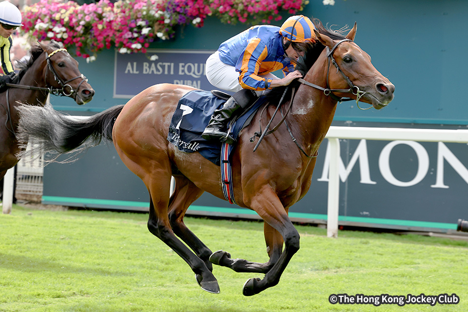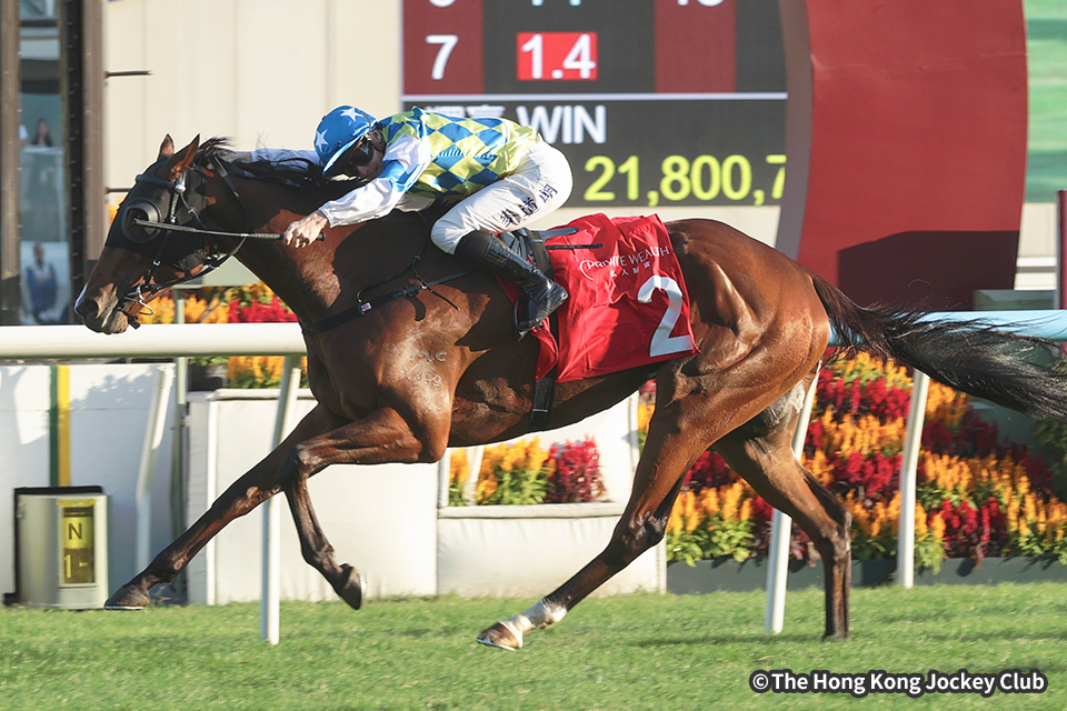 オーストラリアで1戦1勝の後、香港に移籍。重賞初挑戦となった昨年3月10日のクイーンズシルバージュビリーC(G1)で後方から鋭く追い込んで2着に入ると、1,400メートルから2,000メートルへの一気の距離延長となった3月24日の香港ダービー(リステッド)でも離れた最後方追走から直線で馬群を縫うようにして伸びてクビ差の2着に好走。その後、シーズン末の6月にはライオンロックトロフィー(G3)とプレミアプレート(G3)を共に追い込んで連勝。2023-2024年シーズンの香港最優秀4歳馬に輝きました。2024-2025年シーズンは初戦となった10月のシャティントロフィー(G2)で追い込みを決めて、2着のヴォイッジバブルに1馬身半差をつけて優勝。しかしその後は、今年1月の香港スチュワーズC(G1)と3月のチェアマンズトロフィー(G2)での2着はありましたが、6戦して未勝利でシーズンを終えました。今シーズンも始動戦となった10月のシャティントロフィー(G2)は最後方からの競馬で6着でしたが、久々にブリンカーをつけて臨んだ続く前走11月の香港ジョッキークラブマイル(G2)では、後方の内ラチ沿い追走から、直線でもそのまま内を突いて抜け出して半馬身差で優勝。約13か月ぶりとなる勝利を挙げました。