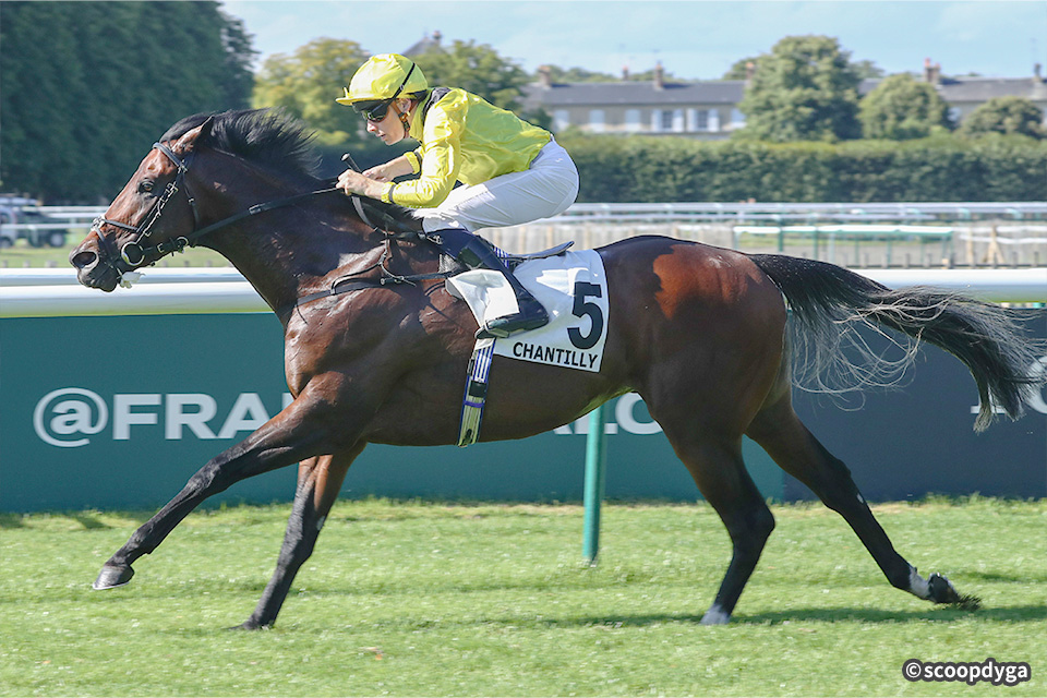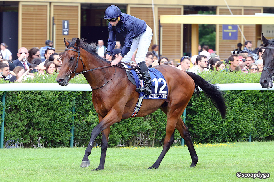 3歳(2023年)5月のデビューから、鮮やかに差し切って重賞初制覇を果たした昨年7月のサマーマイルS(G2・イギリス)まで長期休養を挟みつつ4連勝。しかしその後は昨年8月のジャックルマロワ賞(G1・フランス)が4着、10月のクイーンエリザベスⅡ世S(G1)が5着とともにチャリンに敗れてシーズンを終えました。今年は5月のモントルトゥー賞(リステッド・フランス)を逃げ切り勝ち。続く6月のクイーンアンS(G1・イギリス)は逃げて最下位の10着でしたが、前走7月のメシドール賞(G3・フランス)は2番手追走から直線で力強く抜け出して、重賞勝ち馬ジオグラフィーに2馬身半差をつけて優勝しました。