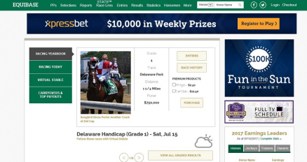 | 10 | 2017 Statistics | 当該年の成績 上から出走回数、1着回数、2着回数、3着回数、獲得賞金(アメリカドル)、1走あたりの平均獲得賞金、最高スピード指数(ポンド表示) |