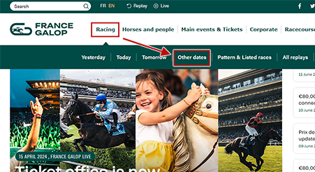 上部のメニュー「Racing」→「Other dates」をクリック。
