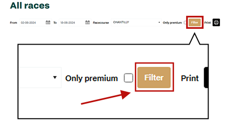 日付、競馬場を選択したら、最後に「Filter」をクリック。