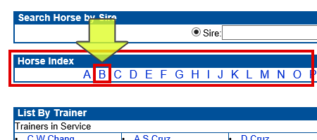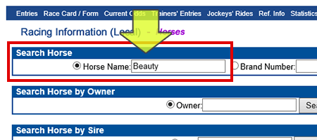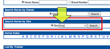 「Horse Name」入力フィールドに、馬名(一部でも可)を英語で入力