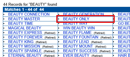入力した馬主名による検索結果の一覧から目的の馬名を選択