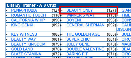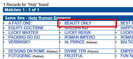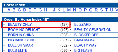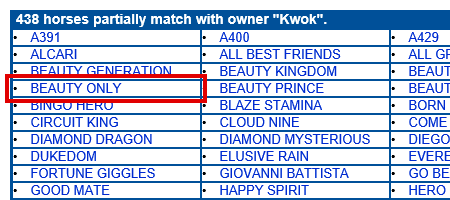 「Beauty Only」〔父Holy Roman Emperor、香港・A.クルーズ(A S Cruz)厩舎、馬主:K.クォック&H.クォック〕のプロフィールを調べます。