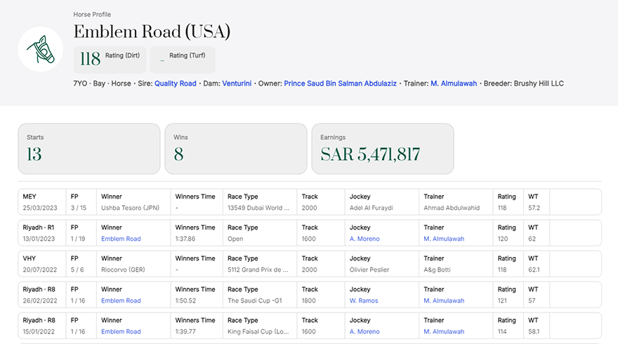 Emblem Roadの競走馬プロフィールが表示されます。