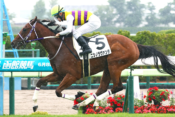 スピードの違いはメイクデビュー函館(芝1200メートル)から群を抜いており、好スタートからハナを切ると最後は後続を4馬身離して快勝。見た目からして強かったが、時計も翌週の3歳以上1勝クラスと0秒1しか違わない立派なものだった。2戦目の函館2歳Sも、新馬同様に逃げの手に出て2着。勝ち馬サトノカルナバルの地力に屈したものの、かわされた後も集中力を切らさずに走れた点は、強い気持ちの証明と言えそうだ。母プルージャはアルゼンチンのダート1600メートルのG2勝ち馬で、本馬もマイルをこなす素地はありそう。展開面からも侮れない一頭だ。