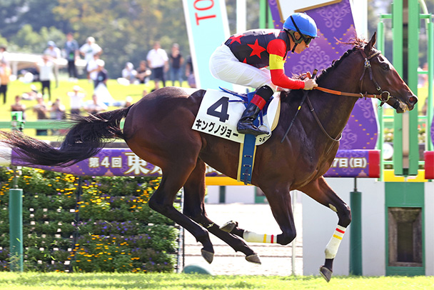 単勝オッズ1.3倍の1番人気に応えたメイクデビュー東京。抜群のスタートを切って前へ。なかなか隊列が決まらなかったが、力むことなくスッと好位に収まった。直線は馬群の狭いスペースを力強く抜け出すと、一気にトップスピードへ。メンバー中最速の上がり3ハロン33秒8(推定)の末脚で2着馬を2馬身1/2突き放した。騎乗したC.ルメール騎手は「いい瞬発力を見せてくれました。すごくいい感じだったし、これからが楽しみです」と、ポテンシャルを高く評価した。2023年セレクトセールにおいて3億4100万円(消費税込み)で取引された期待馬。この先の大舞台での活躍もイメージできる器だ。馬名の由来は「王様の+人名より」。