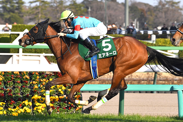 ハナで自分のリズムを刻みたいタイプ。近8戦中、実に7戦で逃げの手に出ている。昨年の中山牝馬Sも先頭でマイペースの逃げ。稍重馬場で前半1000メートル通過タイム1分01秒5という息の入る流れを演出した。3コーナーでまくり気味に進出してきたライバルもいたが、かわされないよう絶妙にペースアップ。ラストは後続の猛追をしのぎ切った。騎乗した岩田望来騎手は「ためても切れるタイプではないので、自分のリズムで運ぶことだけを考えていました」と、会心のレースを振り返った。その後もコンスタントに出走を重ねてきたが、持ち前のスピードは健在。連覇を目指し、今年も理想の形に持ち込みたい。