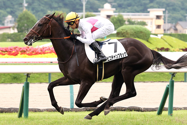血統表には父ドゥラメンテ、母の父フランケルという名種牡馬の名が並ぶ良血馬。メイクデビュー札幌(芝1800メートル、1着)で見せた走りは圧倒的だった。ここは骨折休養明けの一戦だが、突破するだけのポテンシャルを秘めている。
