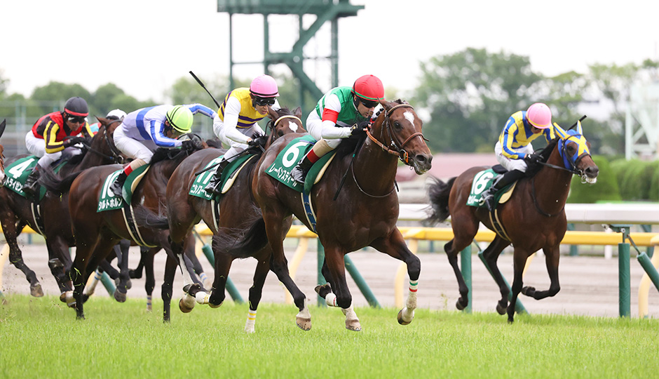 2コーナー付近に設けられたポケット地点からスタートして、本線に合流していくレイアウト。スタート地点から2コーナーまでの距離が短いが、先行争いはバックストレッチに入ったところで一旦落ち着くことが多い。バックストレッチ後半の起伏を越えて3コーナー途中までは下り勾配。徐々にペースを上げながら直線に向かう。ゴール前の直線は525.9メートル。直線入口から残り300メートル地点まで高低差2メートルの上り坂が続き、上り切ってからゴールまではほぼ平坦になる。一見すると芝1600メートルに類似したコース形態だが、コーナーが1つ増えることでペースに緩急が生じて中距離戦らしいレース展開になりやすい。展開に対応できる器用さや折り合いが要求される。