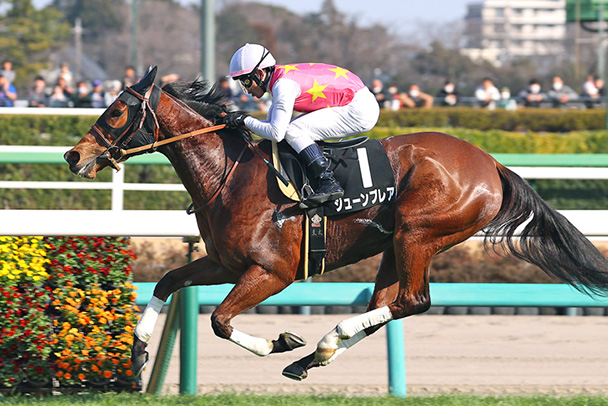 ダートでデビュー3連勝を飾った素質馬。昨年12月の全日本2歳優駿(JpnⅠ・川崎・ダート1600メートル)でビッグタイトルも手にした。芝は初挑戦となるが、3歳牝馬で52キログラムの斤量は魅力だ。