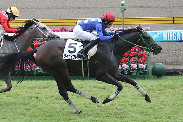 7月26日のメイクデビュー新潟(芝1600メートル)は、二の脚を利かせて前に取りつくが、他馬の動きもあり、1列ほど下げて中団のインを追走。直線に入ってから徐々に外へ出し、残り400メートル付近で進路を確保すると、上がり3ハロン33秒1(推定)の末脚で弾けるように突き抜けて2馬身1/2差で快勝した。騎乗した石神深道騎手は「競馬センスが良く、すごく乗りやすいです。折り合いがつき、しっかり反応して抜け切ってくれました」と称賛を送っている。初戦が減量騎手起用で、今回は斤量増が鍵になるが、本レースと同舞台で勝ち上がった点は強みになりそうだ。