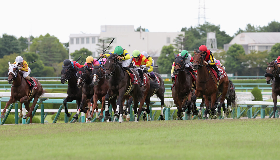 2コーナー近くの引き込み線からスタートして、ほどなく本線に合流する。外回りコースを使用し、最初のコーナー(3コーナー)までの距離は600メートル以上。芝1600メートルを2コーナー方向に200メートル延ばしたレイアウトだ。道中が平均的に速く流れる点ではマイル戦に近いが、この距離では3コーナー手前からペースが緩んで、多少でもラップにメリハリが生じることが多い。ホームストレッチはゴールまで473.6メートル(Aコース使用時)。残り600メートル付近から下りが始まり、4コーナーからペースが上がっていくので、ラスト600メートルは速い脚を使い続けなくてはならない。ゴール直前には高低差1.8メートルの坂が待っている。脚をしっかりためなくては勝ち負けするのが難しく、上手に折り合える能力が重要になる。