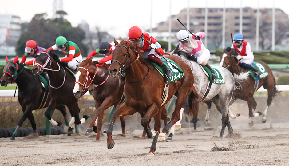 バックストレッチを2コーナー方向に延長した引き込み線からのスタートで、しばらく芝の上を走ってからダートコースに合流する。スタート地点がコース中の最高地点で、スタート後すぐ下り坂になるため、芝スタートも相まって前半のペースは非常に速くなりやすい。向こう正面半ばを過ぎると勾配は緩やかになるものの、4コーナーまでは下り基調が続くため、スピードが緩まないまま直線に向く。ゴール前の直線は308メートルと短いが、残り200メートル付近から急な上りが待っており、ここで最後の力比べになる。前後半で緩急の落差が激しいコース形態。ハイペースを追走するスピードに加えて、ゴール前の急坂で脚が鈍らない持続力が求められる。