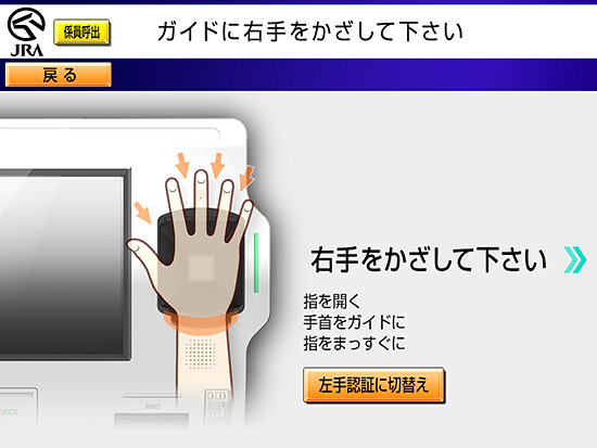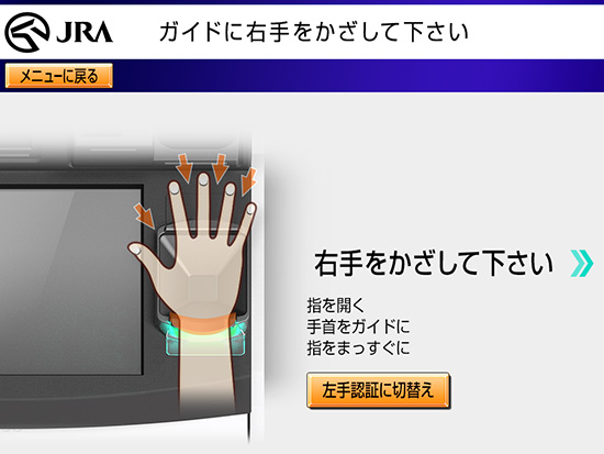 手のひら静脈の場合は、静脈リーダーに手をかざしてください。