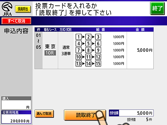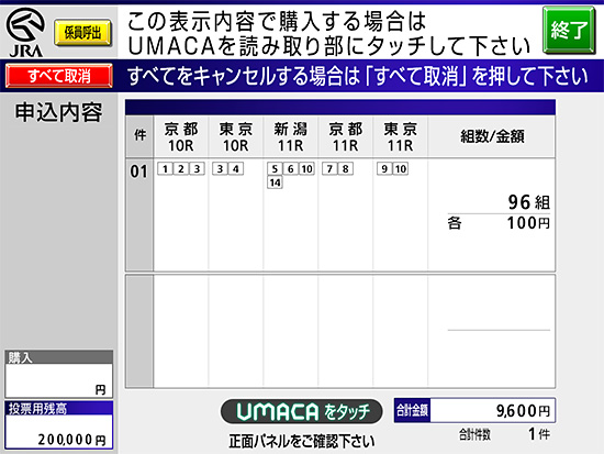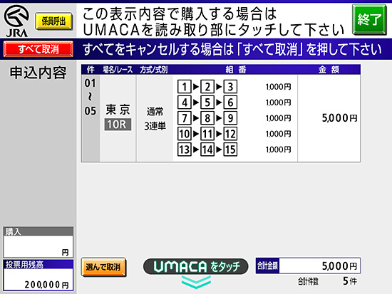 UMACAがあれば、UMACA投票機を使って、競馬場・ウインズでWIN5が購入できます。