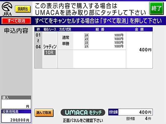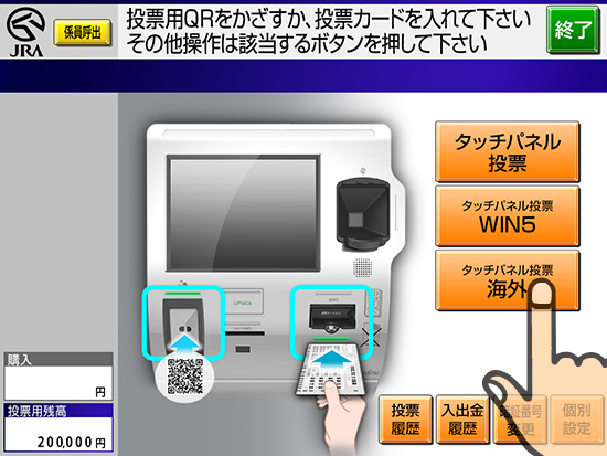 UMACAがあれば、UMACA投票機を使って、競馬場・ウインズで海外競馬の馬券が購入できます。