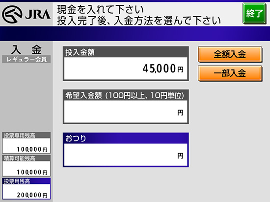 UMACAに入金(チャージ)したお金は「投票専用残高」となり、出金することができません。