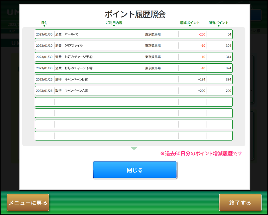 • 「UMACAポイント履歴情報」ボタンを押してください。