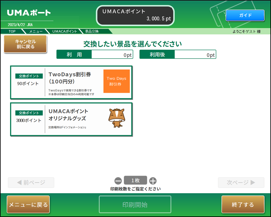 クーポンは、交換した競馬場・ウインズで当日限り有効となりますので、交換の際にはご注意ください。