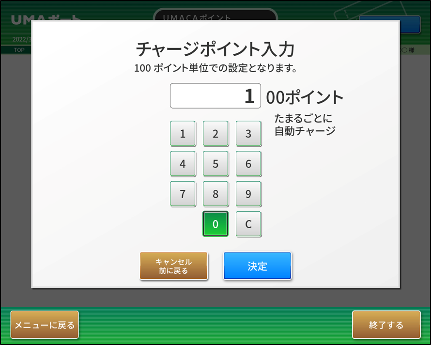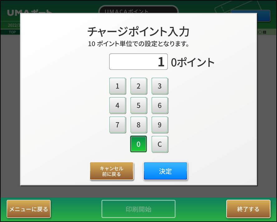 • お好みチャージポイントを入力し、「決定」ボタンを押してください。