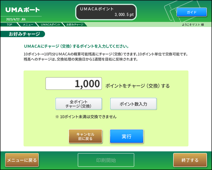 UMAポートで交換するポイントを指定した翌週にチャージされます