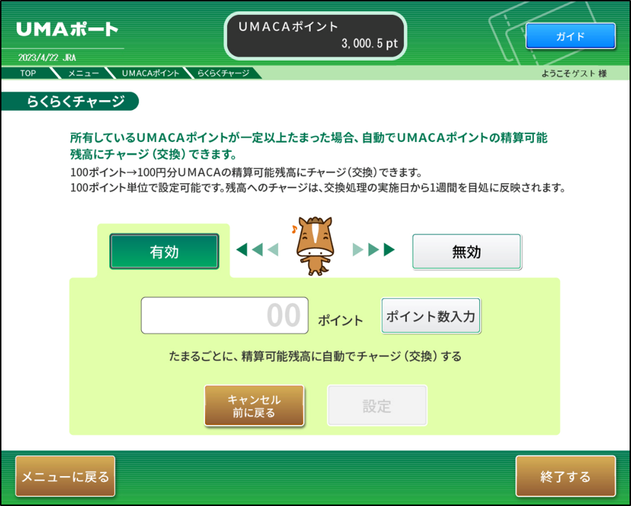 UMAポートで指定したポイントが貯まった週に自動でチャージされます