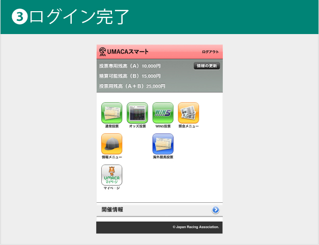 注記) UMACAへのご入金およびご出金は、競馬場やウインズに設置されている入出金機をご利用ください。