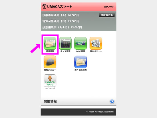 UMACAにご登録いただいたら、UMACAへ馬券購入資金をご入金ください。入金方法はこちらです。