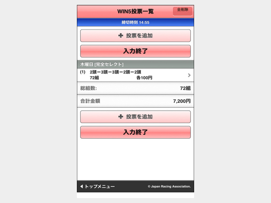 馬名やオッズを見ながら、スマートフォンならではの感覚的な操作で購入が可能です。
