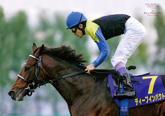 特別付録の優駿オリジナル両面ポスターは、「未来に語り継ぎたい名馬BEST100」1位ディープインパクトと2位イクイノックスのデザインです。