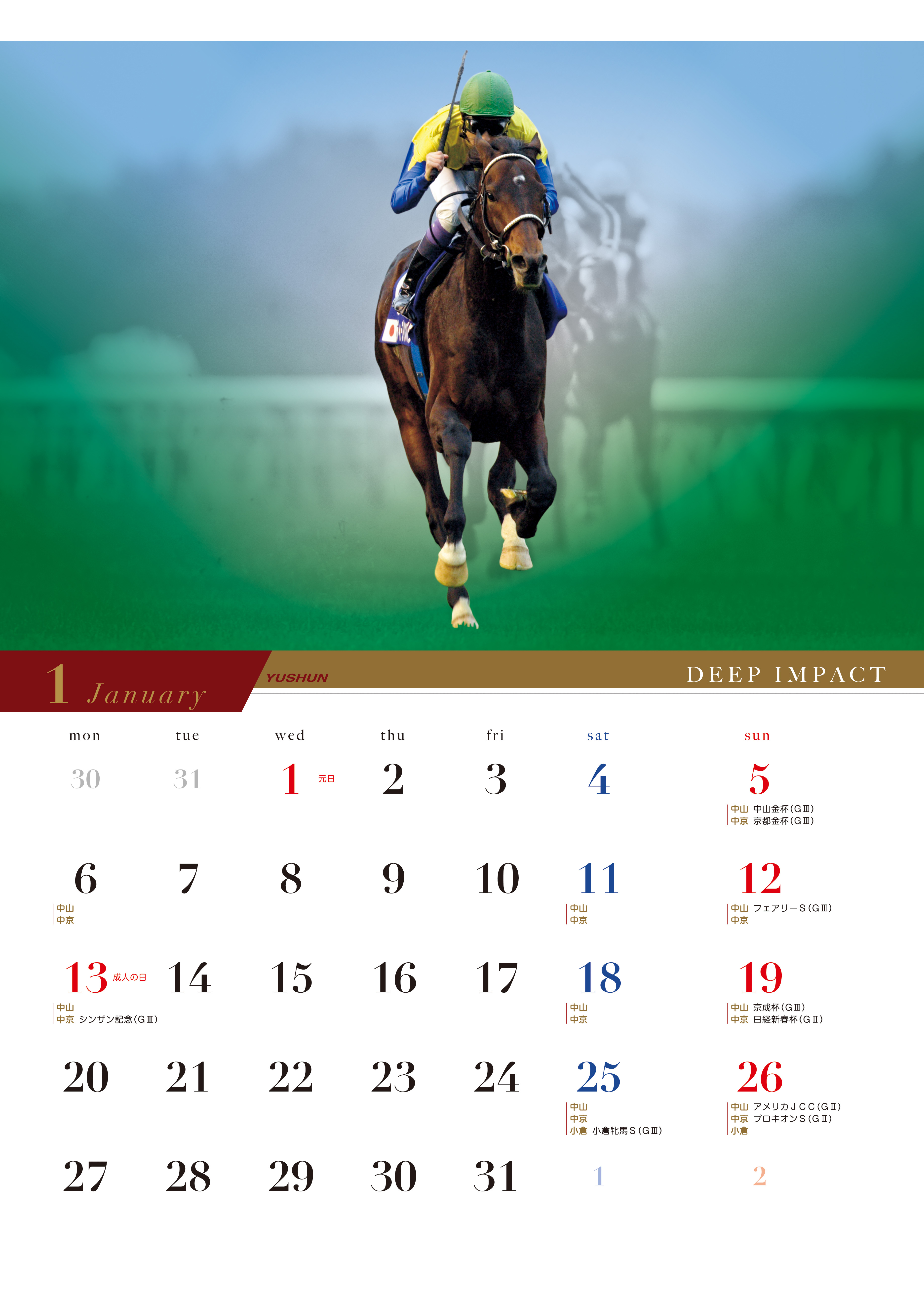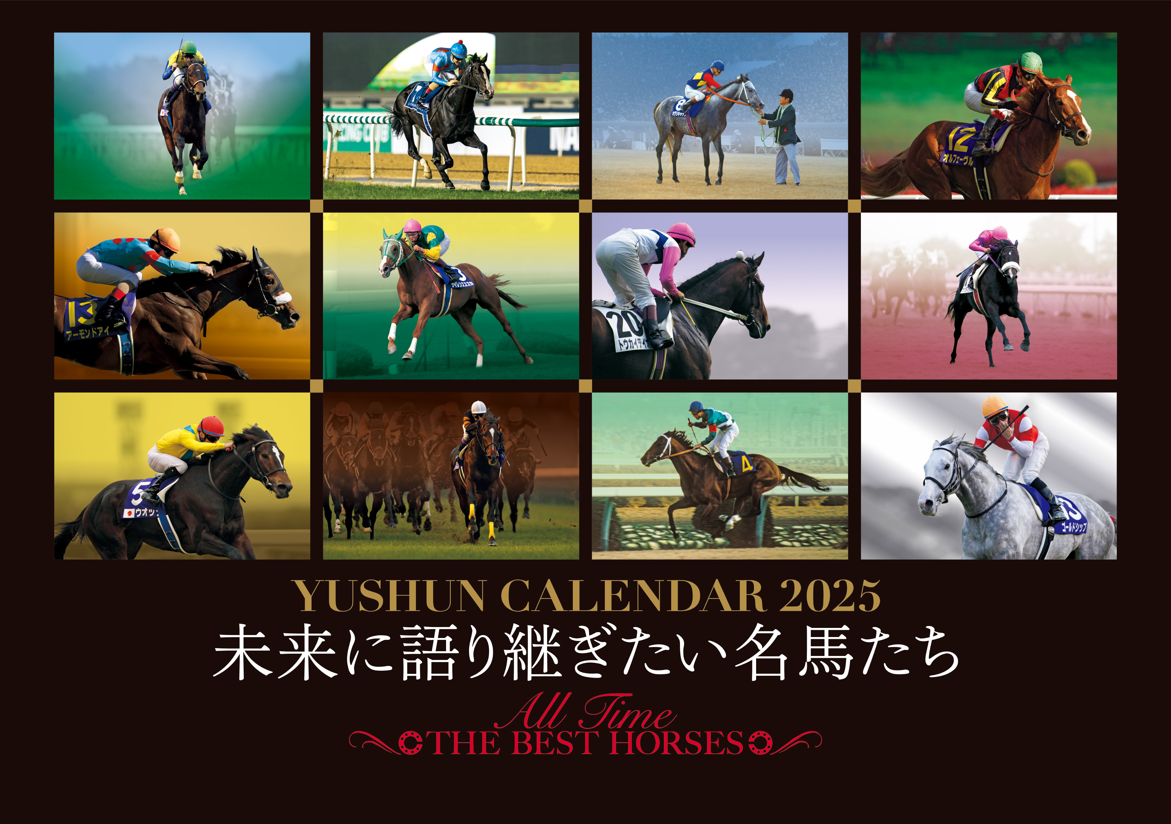 新春特別付録の優駿オリジナルカレンダーは、『優駿』9月号で発表した「未来に語り継ぎたい名馬BEST100」上位12頭を収録しています。
