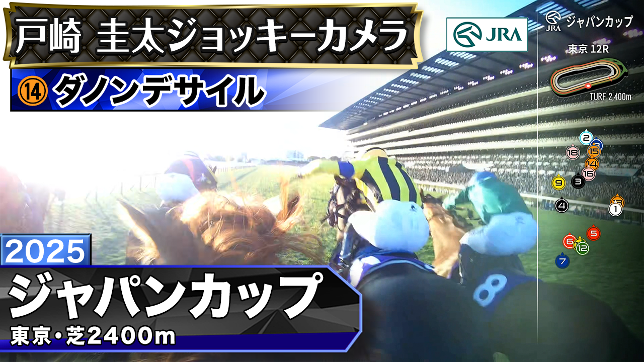 ジャパンカップ(GⅠ)に出走したダノンデサイル(戸崎 圭太騎手)、ジャスティンパレス(C.デムーロ騎手)のジョッキーカメラ映像をYouTube「JRA公式チャンネル」で公開いたしました。 YouTube「JRA公式チャンネル」では、レース動画や調教動画、過去のジョッキーカメラ映像などを公開しています。チャンネル登録もお願いします!