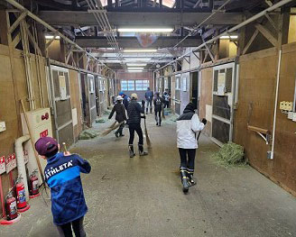 乗馬練習、馬の取り扱い(馬装・手入れ等)、厩舎作業