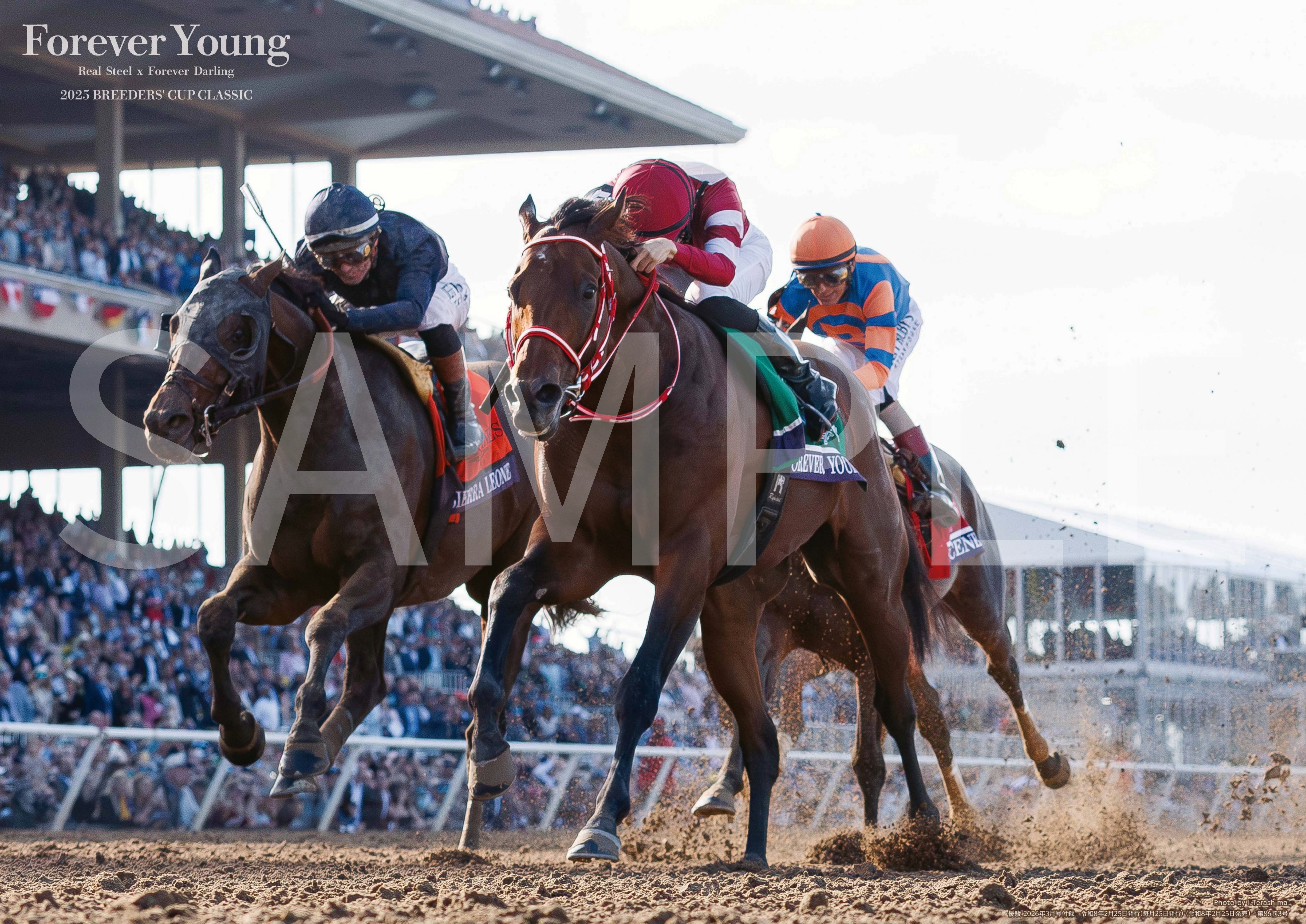 特別付録の優駿オリジナル両面ポスターは、日本調教馬として初めてブリーダーズカップクラシックを優勝したフォーエバーヤングをデザインしました。