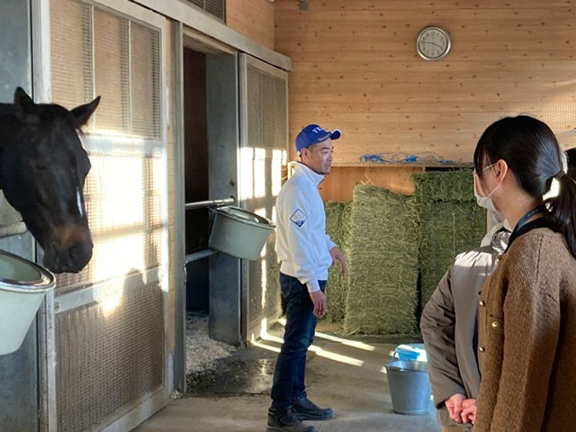診療所見学、乗馬体験、馬場作業車見学、厩舎訪問 など