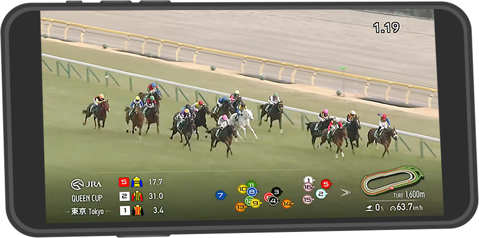 JRA公式アプリで視聴ライブ中継時間中にJRA公式アプリの「レースライブ」ボタンと押すと視聴できます。